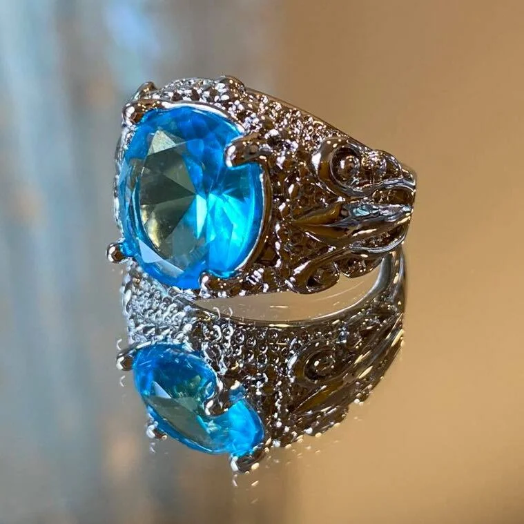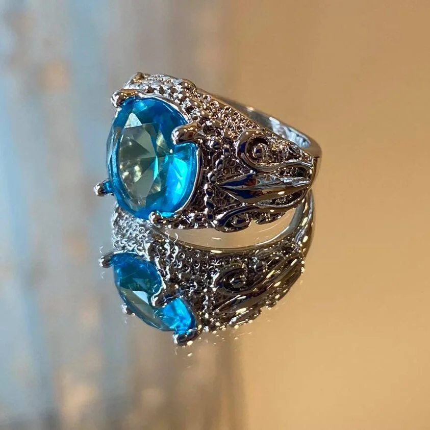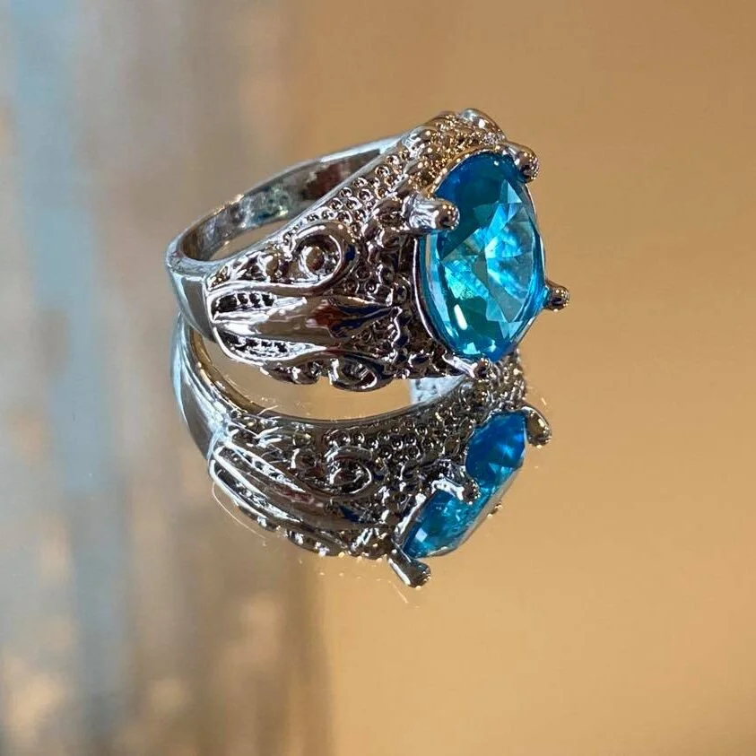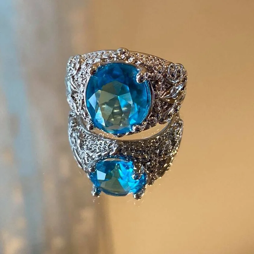 Pasidabruotas žiedas su melsvu kristalu “Luxury Unique Number Eleven”